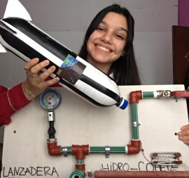 A partir de hoy sobre las 14:30 horas, la alumna (única representante del liceo Fraile Muerto en este evento), estará comenzando a exponer en la instancia departamental de clubes de ciencia, su trabajo de cohetería que ha venido desarrollando hace meses. El proyecto comenzó con el profesor Maicol Arguello, que logró captar la curiosidad de la estudiante, y que esta fabricara un cohete de plástico, cuya propulsión es a base de agua y aire comprimido. A partir de ahí, en laboratorio de ciencias, el Profesor Fabián Regalado, complementó la tarea con los fundamentos teóricos y la experimentación, que se basó en que la estudiante comprendiera porqué vuela el cohete, cuales son los factores que hacen que este vuele lo mas lejos posible, para mejorar el tiempo y la distancia de vuelo. A su vez, ya se está trabajando para mejorar altitud, y estabilidad de vuelo. El nombre del club de ciencias es RocketGirl, y es una previa a su participación en la etapa nacional a partir del 20 de octubre de este año.